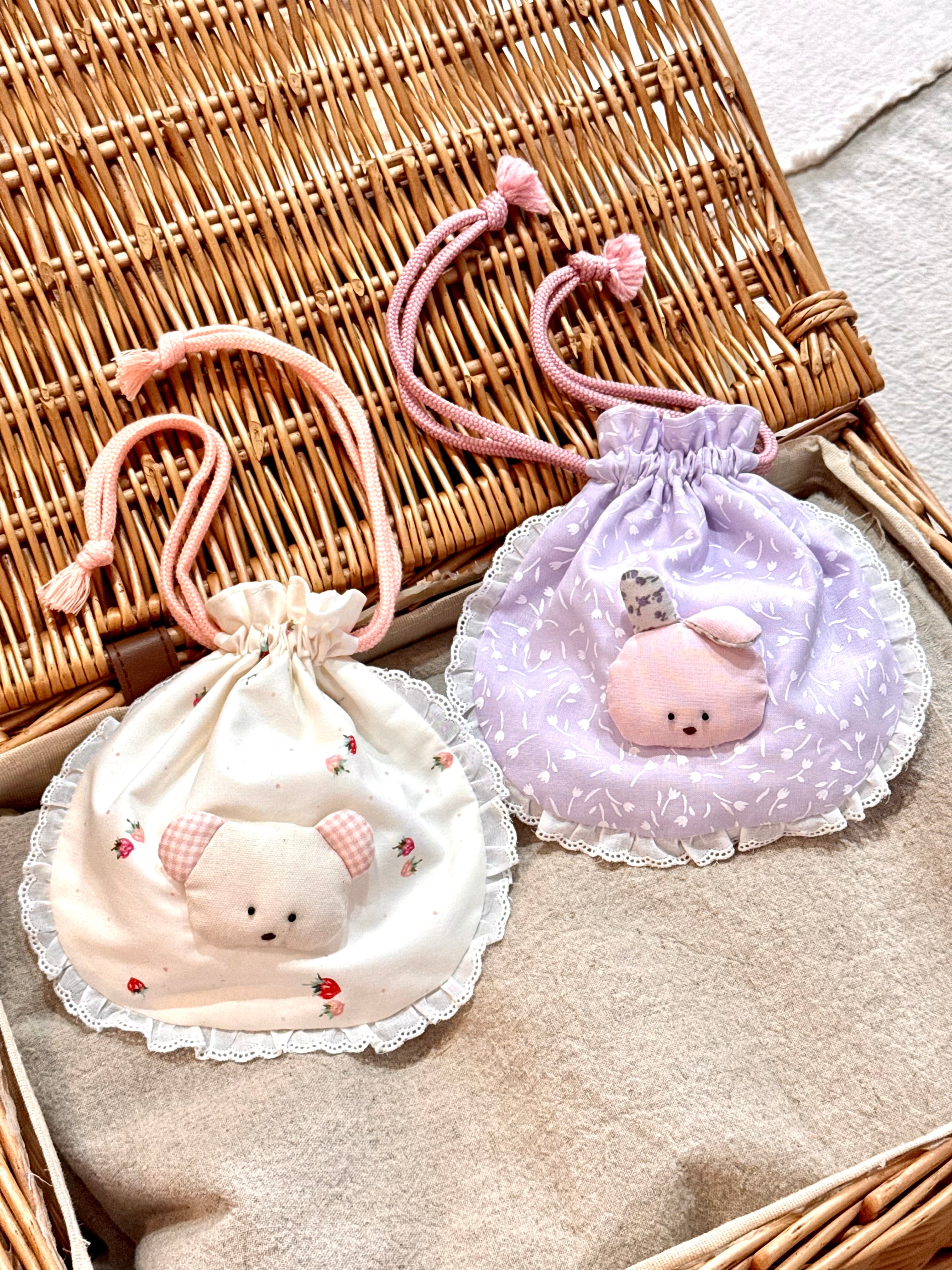 ぷっくりアニマルフェイスがついた巾着♩