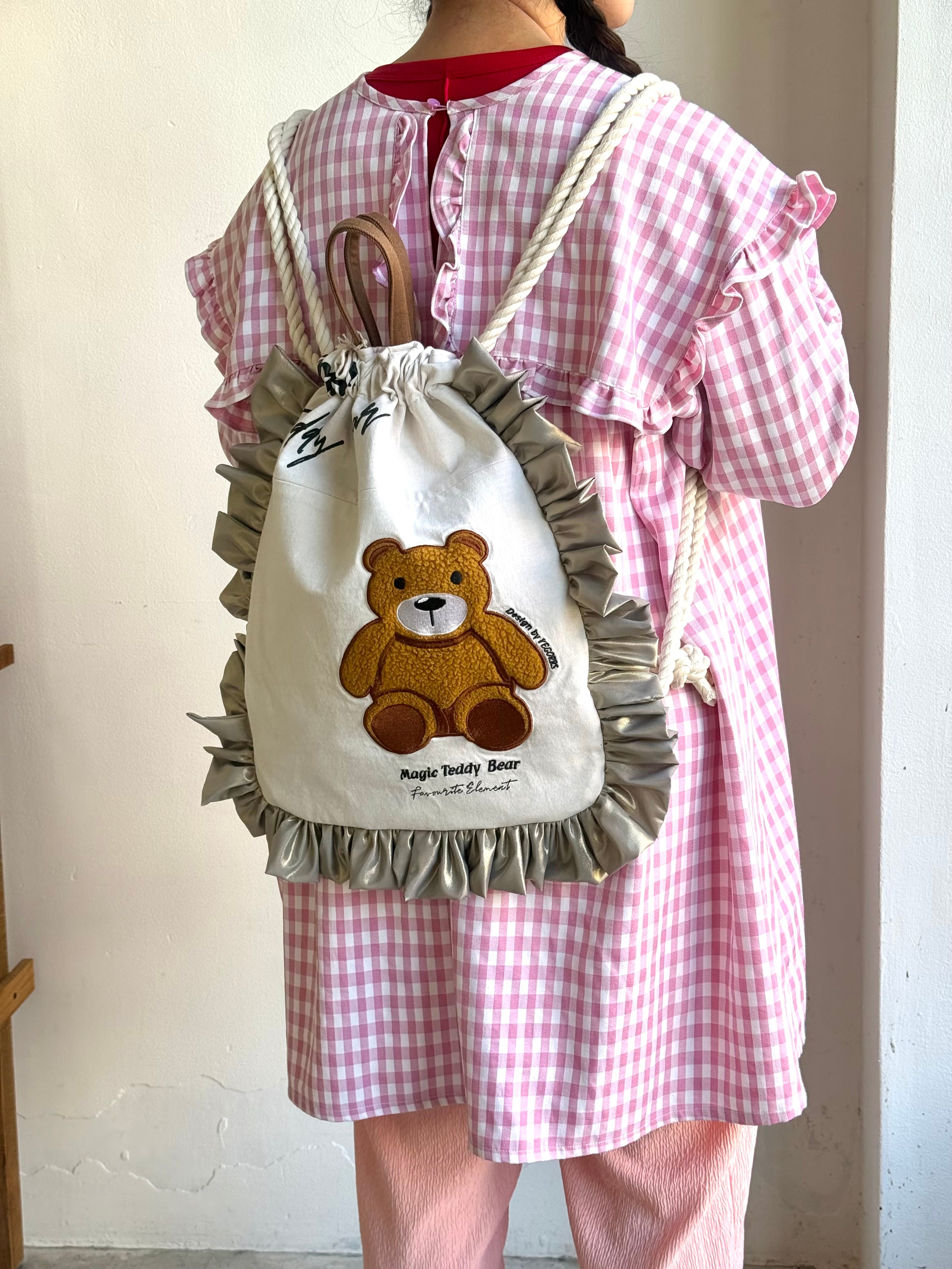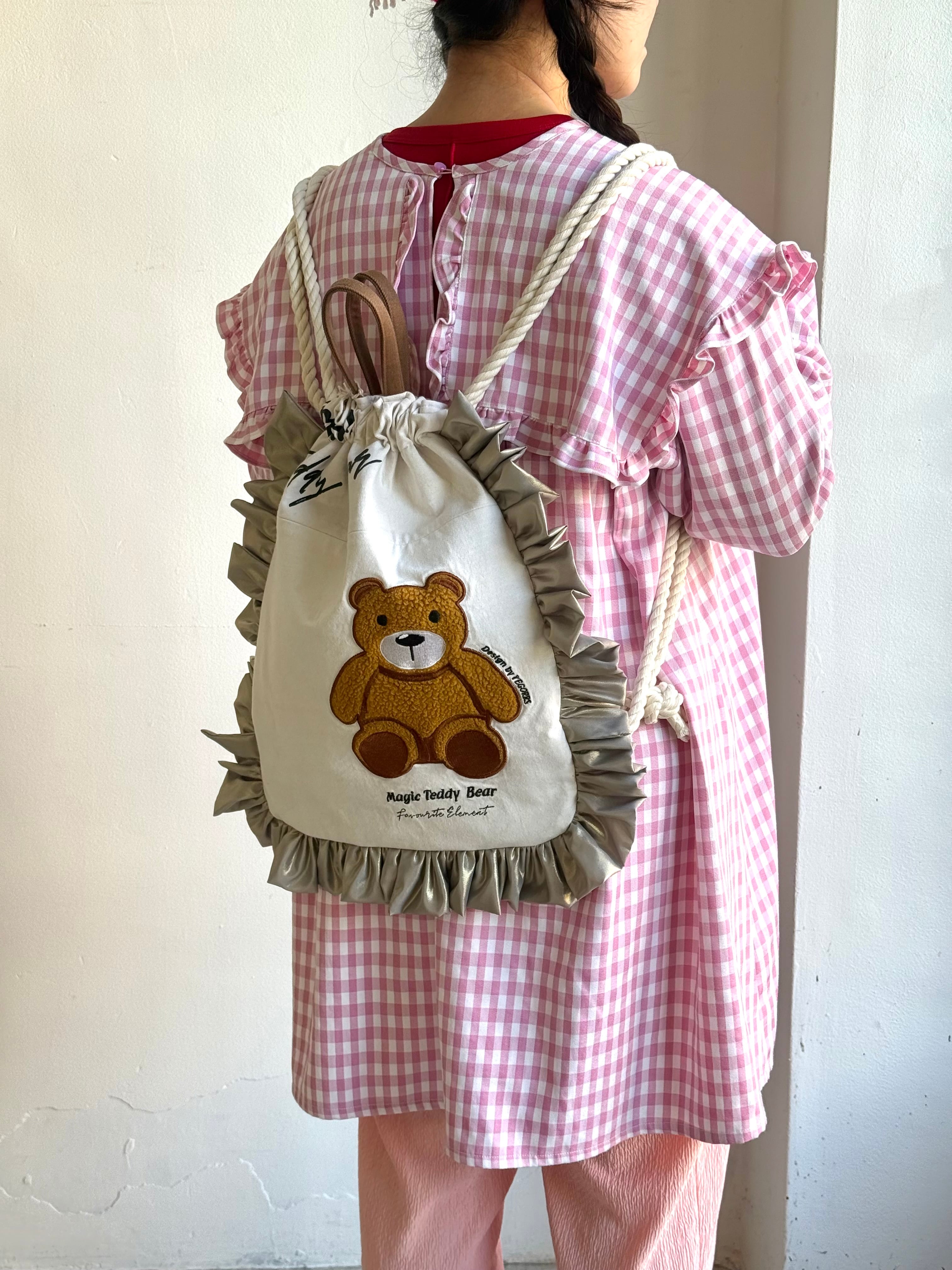 【SHIROMAME】リメイクナップサック モコモコくまちゃん