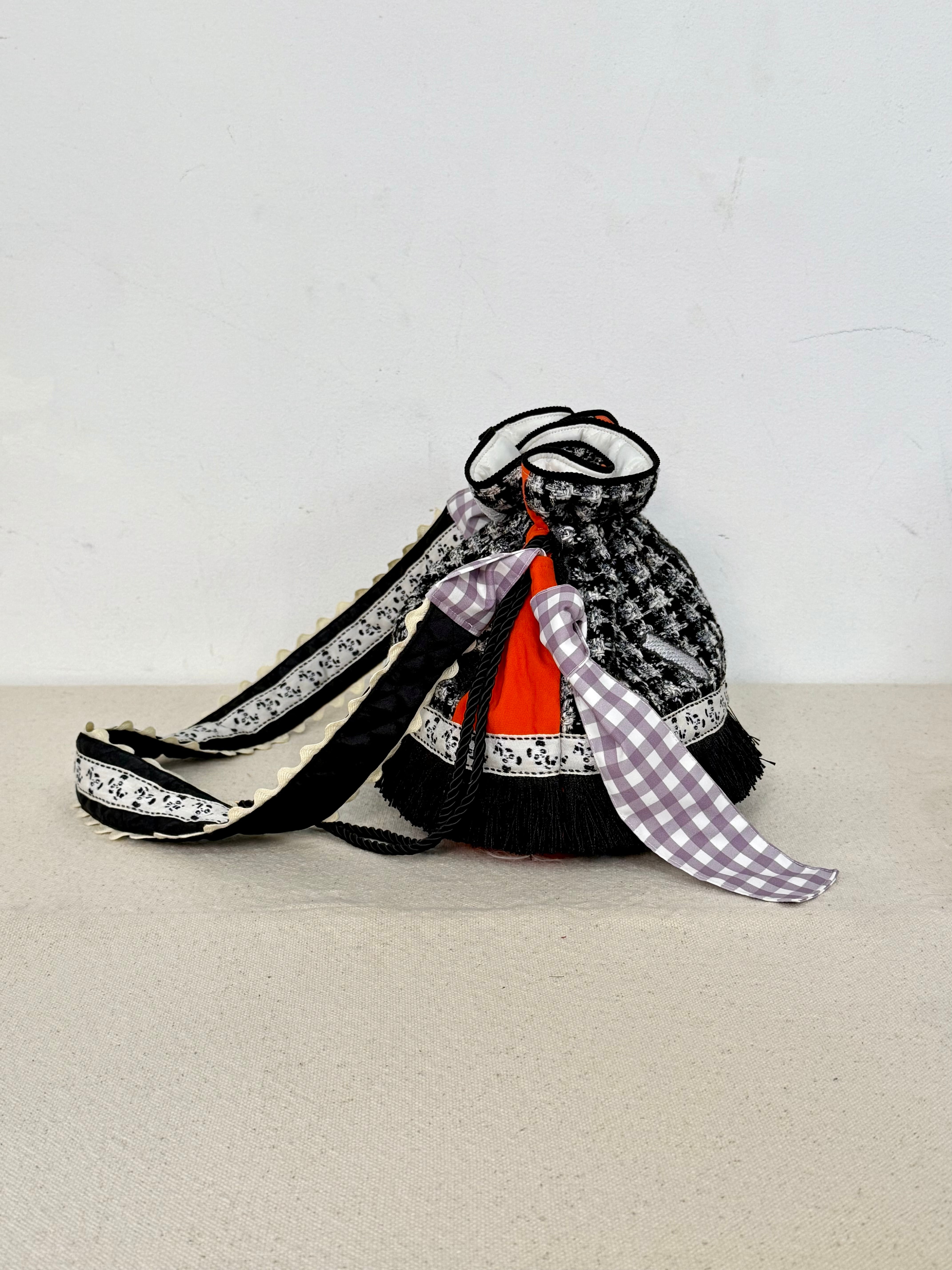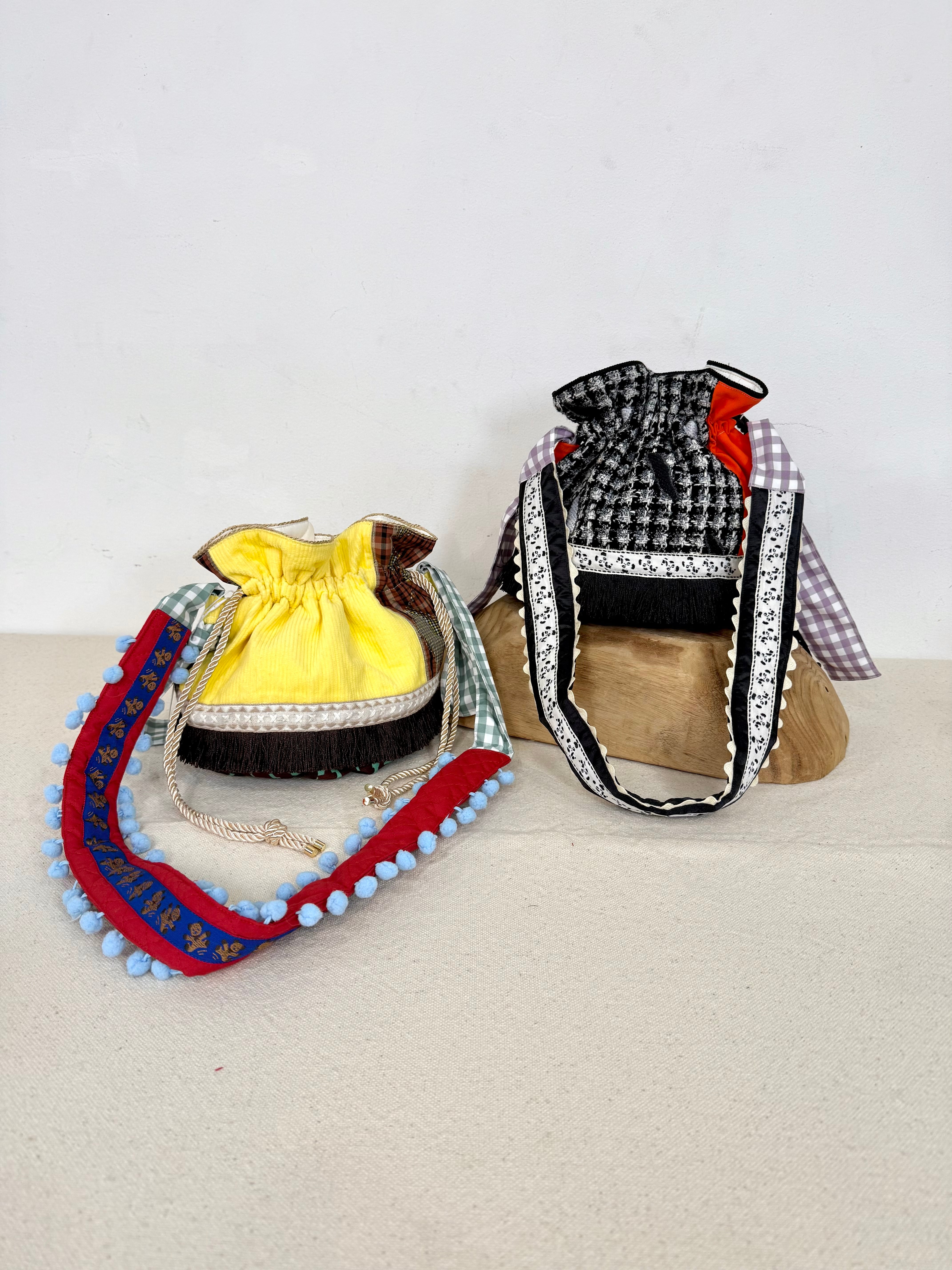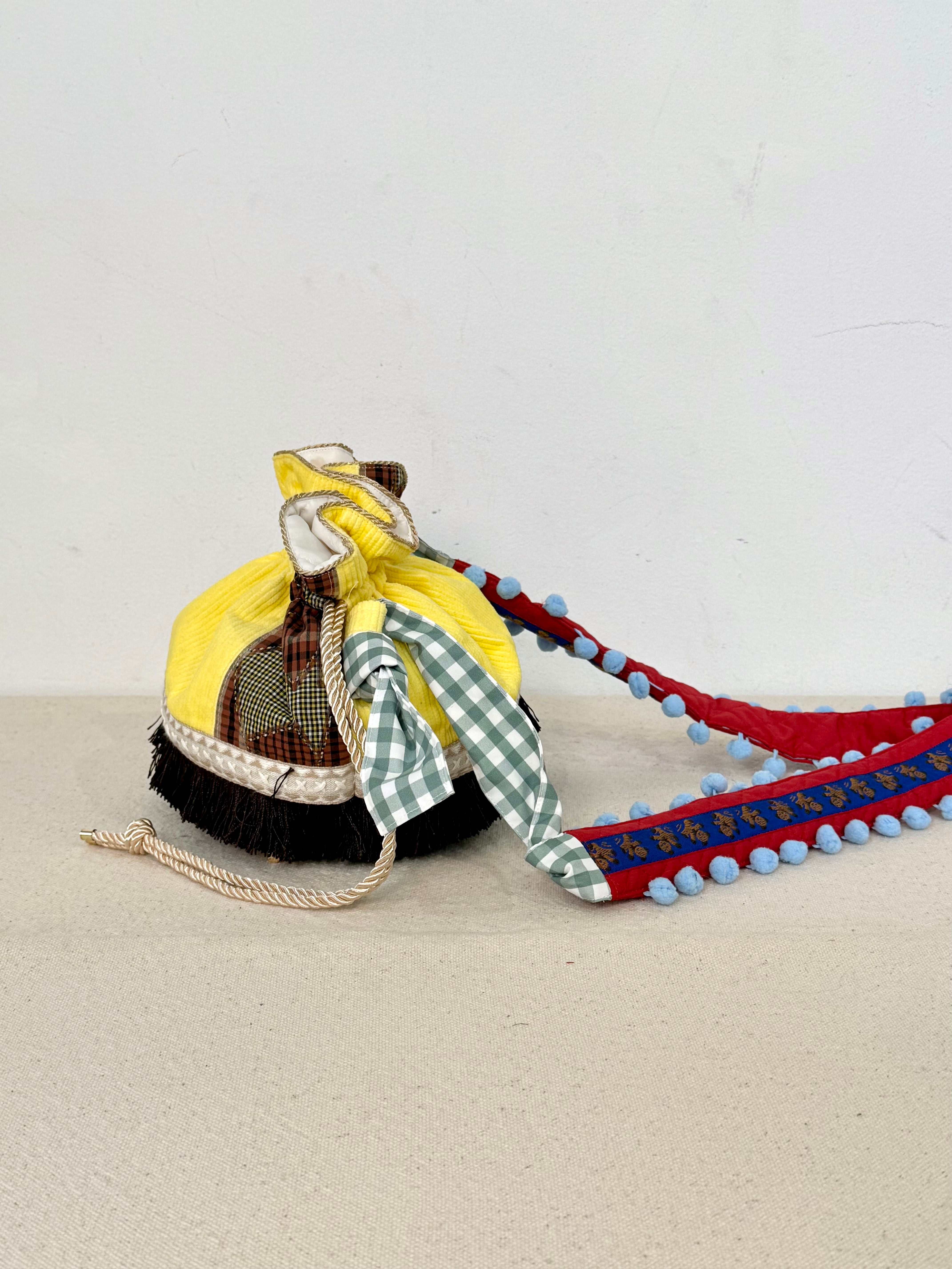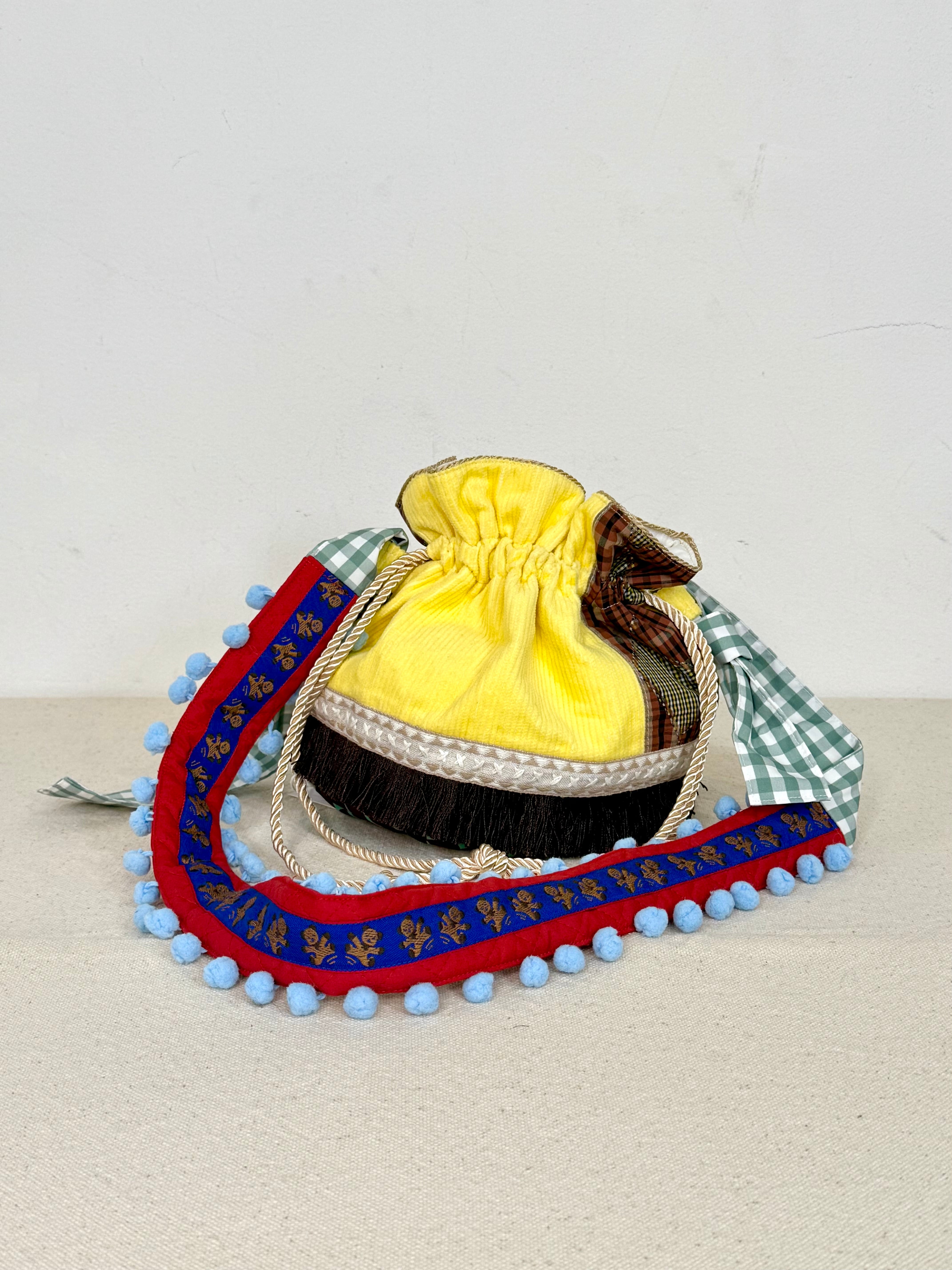 ころんとしたフォルムにフリンジが可愛い巾着バッグ。