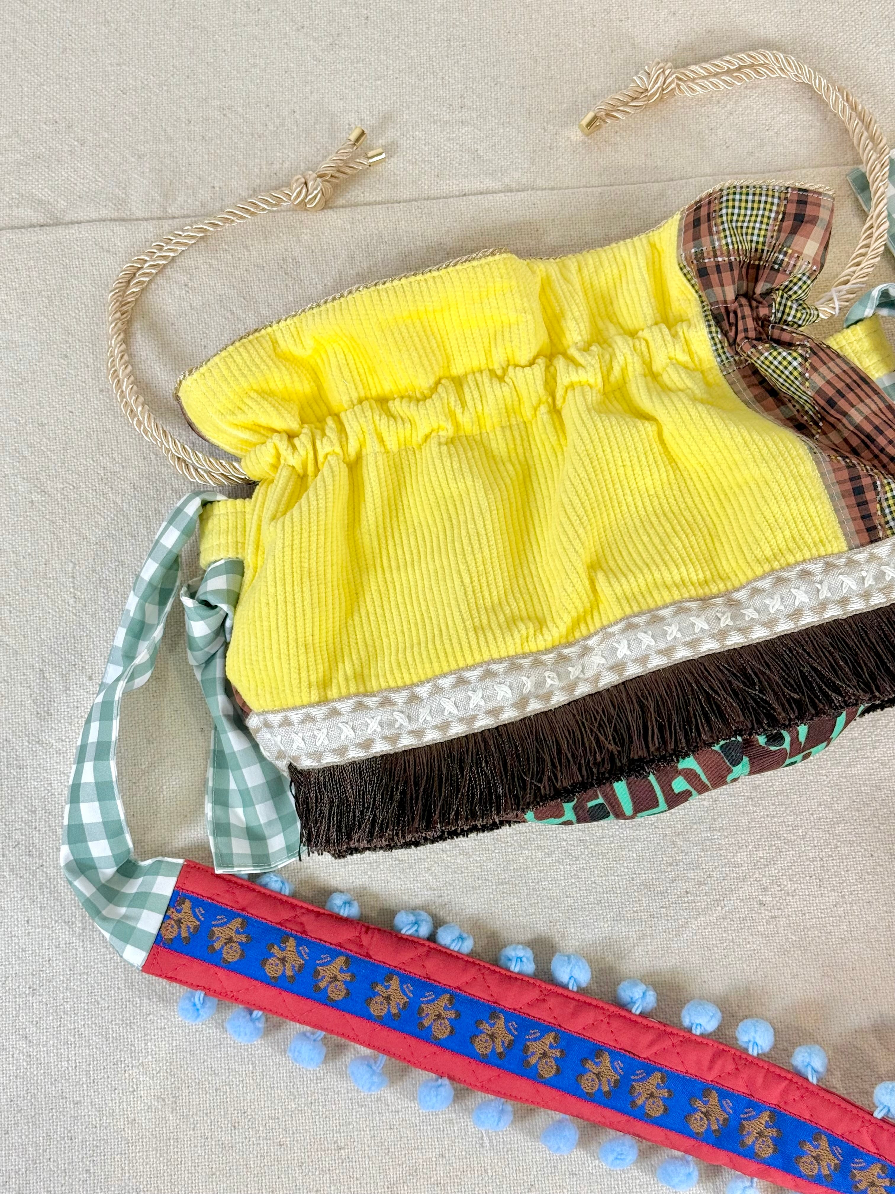 黄色い巾着はショルダー部分をよーく見るとくまさんが♩